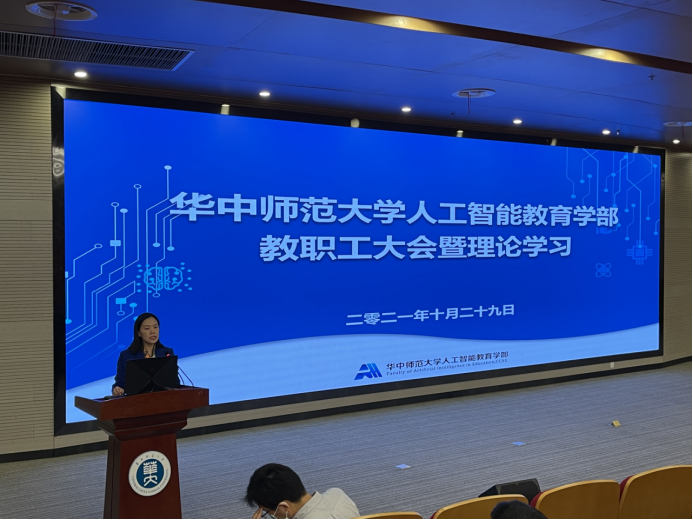 人工智能教育学部讯(通讯员刘晓静)10月29日,人工智能教育学部在南湖综合楼一楼报告厅举行全体教职工大会暨10月份教职工理论学习。学校副校长、学部部长夏立新教授出席,学部党委书记罗丽华主持,学部党委中心组和全体教职工参加学习。