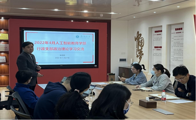 人工智能教育学部讯(通讯员 余莲)4月29日,人工智能教育学部行政管理服务支部在南湖综合楼1161举行4月支部主题学习,学部副书记吴绍靖应邀参加会议并领学国家安全专题党课,支部书记吴和林主持。