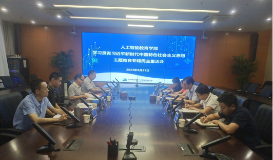 (通讯员:田璐)2023年8月31日下午,人工智能教育学部学习贯彻习近平新时代中国特色社会主义思想主题教育专题民主生活会在南湖综合楼1182会议室顺利召开。校长郝芳华以书面形式参加会议并提出指导意见,校主题教育联络协调组第一组组长王旺胜到会指导,学部党委书记黄涛主持会议。