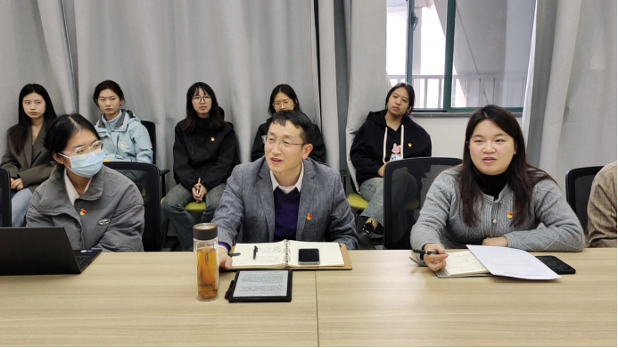理论学习结束后,党委学生工作部副处长鲍新龙作总结讲话,用“三有”对本次党日活动进行了高度肯定。一是本次党日活动的学习形式有特色,将专业背景与党政学习融合,利用数字媒体技术可视化呈现理论学习内容;二是理论学习有深度,本次领学的同志都能够做到充分挖掘学习材料,理清历史脉络,支部理论学习不浮于表面;三是支部工作有效率,本次主题党日活动高效高质量开展,对支部成员政治理论水平提升有很大助益。同时,鲍新龙对支部党员的学习、工作、生活等情况表达了关心,他指出党委学生工作部会与基层党支部建立长期联系,从而促进学生工作和党建工作同时有效开展,相互促进。