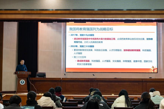 (通讯员 连世强)12月20日,教育技术学硕士第二党支部、计算机科学与技术硕士第一党支部以及国家数字化学习工程技术研究中心博士研究生党支部在科学会堂一楼报告厅联合开展12月主题党日活动。本次活动由学部国家数字化学习工程技术研究中心副主任吴砥领学主讲,各支部党员参加,活动由工程中心孙超老师主持。