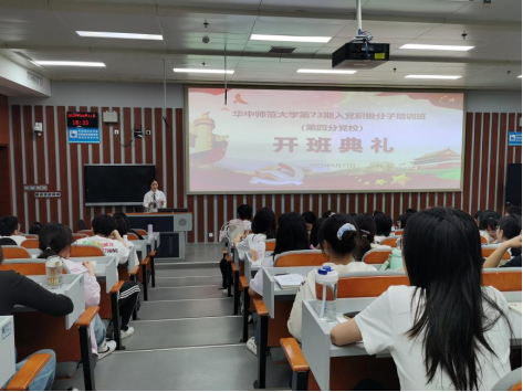 (通讯员 王景丽)2025年4月11日晚18:30,华中师范大学第73期入党积极分子第四分党校集中培训班开班典礼在南湖综合楼N201教室顺利举行。公共管理学院正处职组织员杨帆、人工智能教育学部副处职组织员陈晓宇、公共管理学院党务干事李蓓、人工智能教育学部党务干事田璐以及155名学员参加此次入党积极分子开班典礼。开班典礼由人工智能教育学部现代教育技术硕士第二党支部副书记乐三思主持。