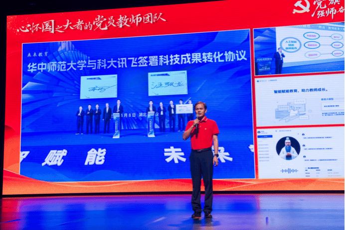 会上,学部党委书记黄涛作为代表讲述《党旗下的强师奋进足迹》沉浸式党课,生动回顾了学部党建与事业发展深度融合的实践成果。他强调,学部自成立起,便以“在高原上建高峰,抢占未来教育发展的制高点。”为目标指引,以创建全国党建工作标杆院系为重要契机,全力开辟教育数字化新赛道上“华师路径”。黄涛重点介绍了教育信息科学与技术教师团队(全国高校黄大年式教师团队)、国家数字化学习工程技术研究中心教工第一党支部(全国高校“双带头人”教师党支部书记工作室)、本科生党支部(全国党建工作样板支部)在突破智能教育“卡脖子”技术、服务教育强国建设、践行党员先锋使命的故事。他指出,从南湖畔综合楼到桂子山科学会堂,学部师生党员以只争朝夕的奋斗姿态,用实际行动诠释着共产党员的初心使命,充分彰显了学部党委为教育强国建设贡献“华师力量”的赤诚之心。