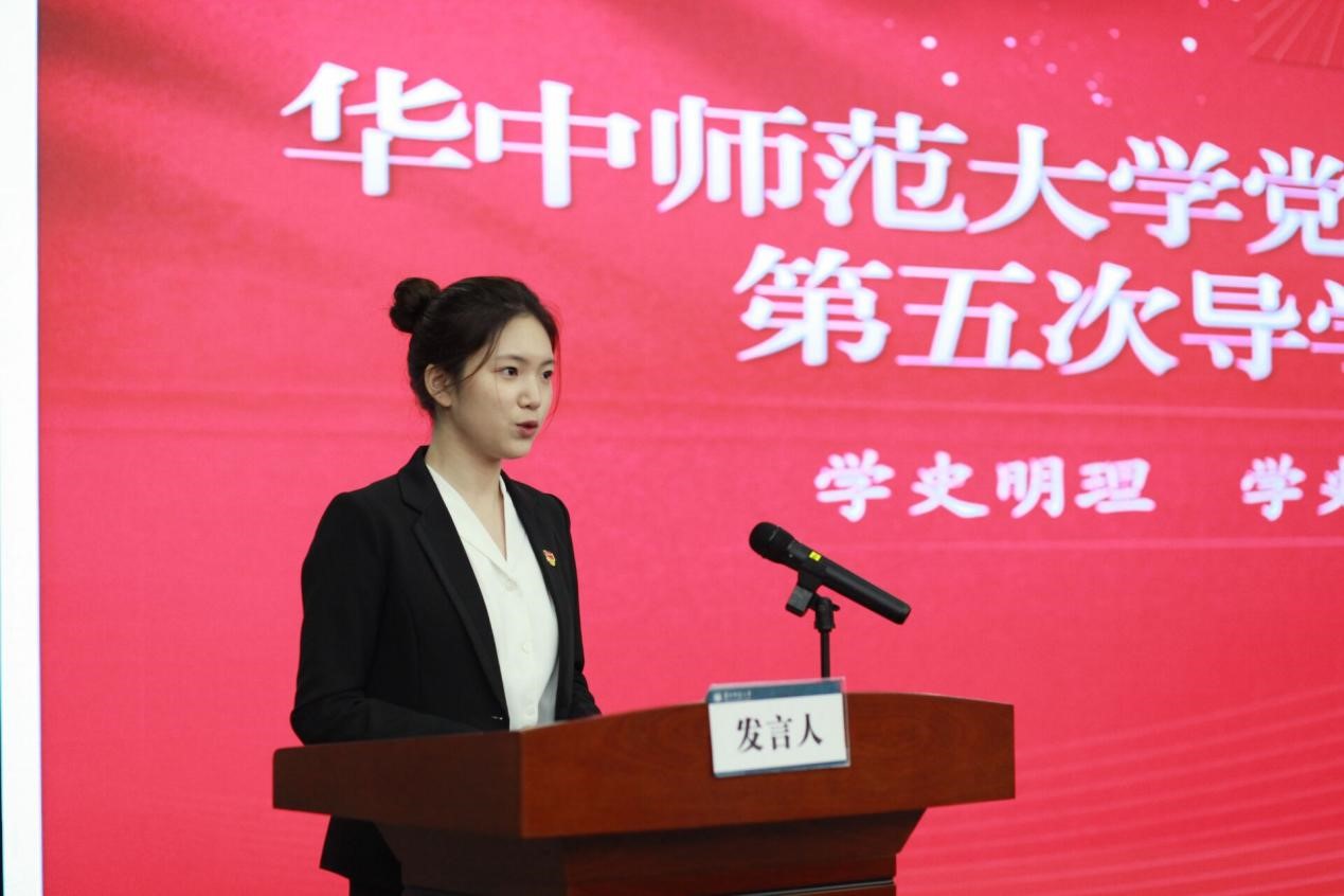 (通讯员 马育浦 任梦璐)2021年5月7日上,华中师范大学党史学习教育专题读书班第五次导学报告暨结班仪式在南湖综合楼一楼报告厅举行。校党委书记赵凌云主持结班仪式。在结班仪式的交流发言环节,学部本科生党支部党员骨干马育浦以《从党史学习中激发信仰、获得启发、汲取力量,扛好大学生党员责任》为题进行交流发言。