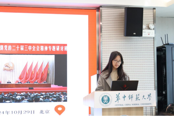 随后,党员同志杨思介绍了习近平总书记在省部级主要领导干部学习贯彻党的二十届三中全会精神专题研讨班开班式上的重要讲话精神,深刻解读了其核心要义和实践意义。