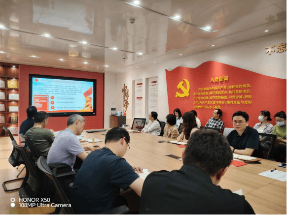 党委副书记、纪委书记、行政管理服务党支部书记邓飞同志以《坚持正风肃纪反腐相贯通》为题讲授专题党课,从正风肃纪反腐相贯通的重大意义、科学内涵、辩证统一关系、具体举措、典型经验等方面,对“正风肃纪反腐相贯通”这一重要论断进行了详细阐述,并结合高校违反中央八项规定精神典型案例进行警示教育,希望全体党员进一步提高思想认识和风险意识,以优良作风凝心聚力、干事创业。
