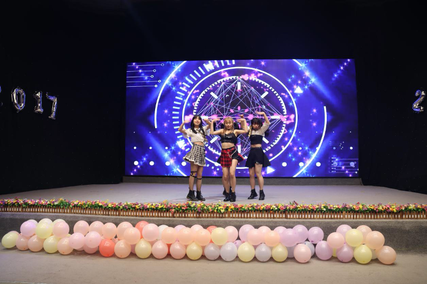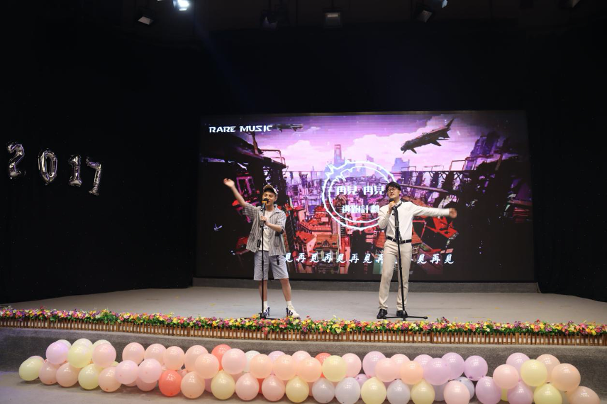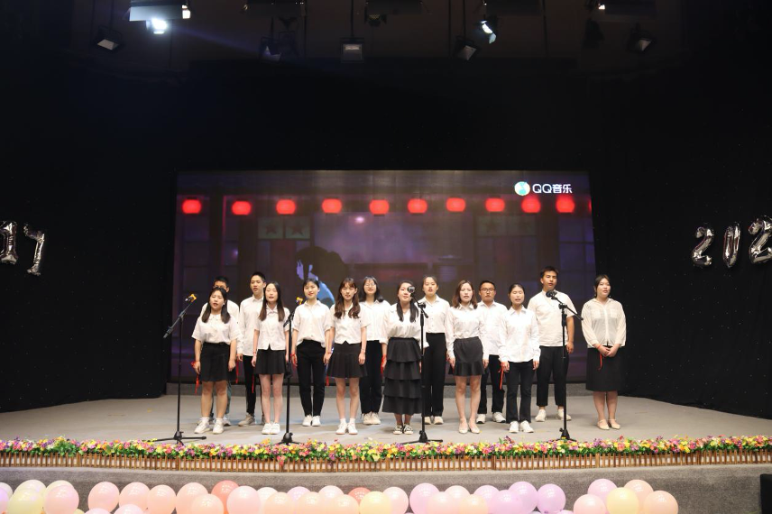 随后就是《蓝莲花》等歌曲串烧和数媒“BLACKPINK”宝藏女孩们的舞台首秀,这个少女团体带来的舞蹈《Lovesick Girls》把现场带到高潮。黄勃代表教师带来歌曲《七律•长征》,为同学们送上亲切祝福。1702班全体同学合唱《倔强》,他们以此祝愿追逐梦想路上的每个人都能够勇敢前行。钟文锐老师和谭政老师为晚会献唱《海阔天空》,并借这首歌祝毕业生的人生和事业海阔天空。毕业歌曲《推开世界的门》《小幸运》《起风了》等的串烧,带领毕业生回忆大学四年里的点点滴滴。