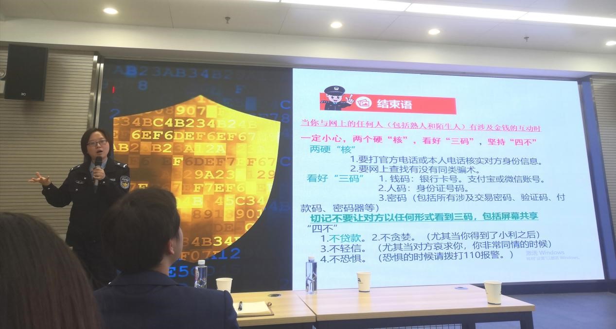 接着,杨家慧所长通过客观、真实的数据向大家介绍了电信网络诈骗的严峻形势,引起大家重视。刘文娟警官介绍了冒充客服类诈骗、虚假网购类诈骗、冒充亲人朋友领导类诈骗、网上刷单诈骗、网络交友诈骗及裸聊、冒充公检法工作人员诈骗、代办信用卡贷款类诈骗以及木马链接、二维码、APP类诈骗等八种电信网络诈骗类型,并结合具体案例向学生讲解了常见作案手法,提醒大家牢记“天上不会掉馅饼、天下没有免费的午餐”。随后徐溢警官通过自己的自身经历提醒大家遇事不要慌乱,多咨询老师朋友,提高安全警惕,避免上当受骗,并希望在未来能够利用人工智能技术提高鉴别诈骗能力。