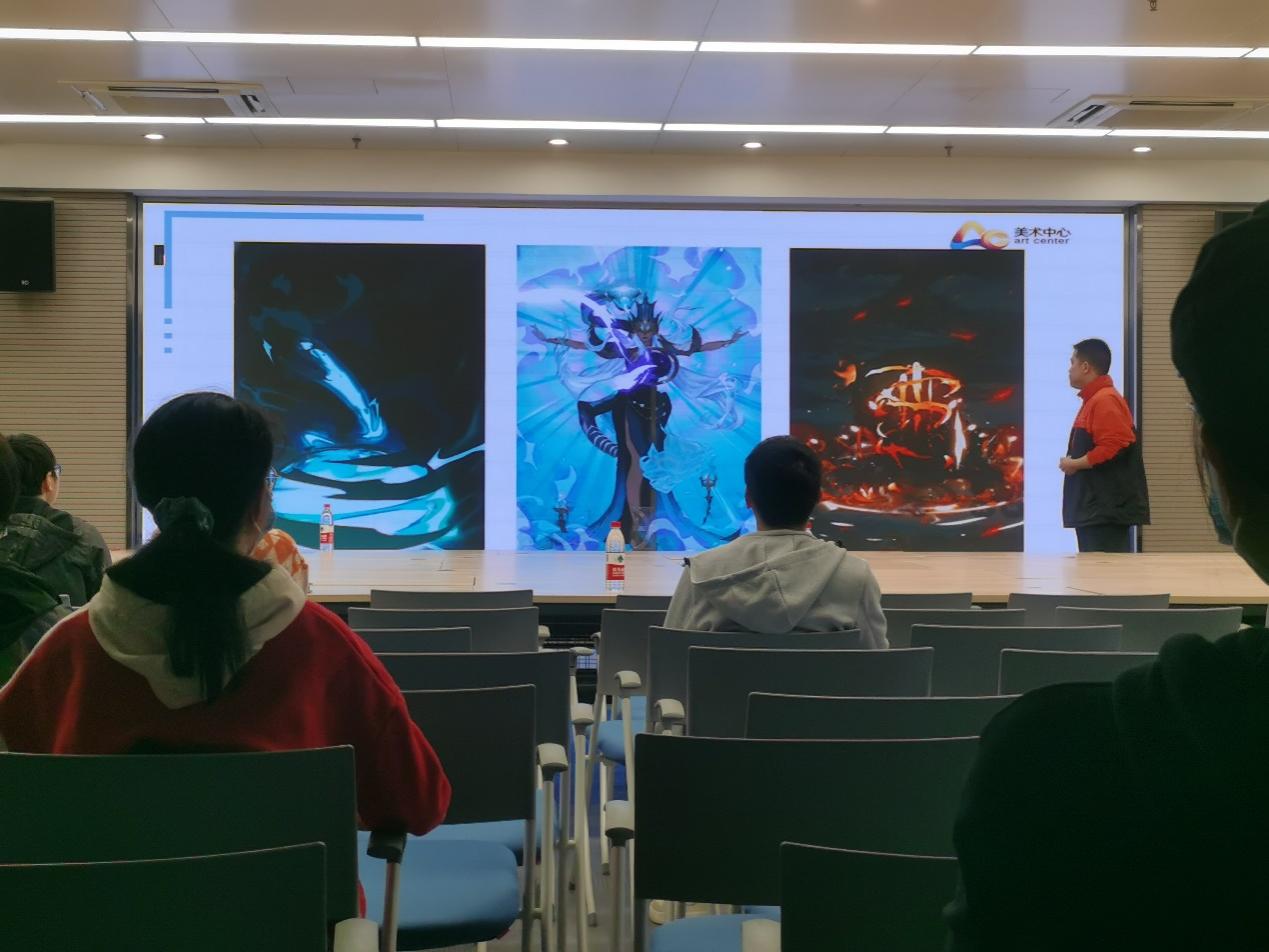 首先,雷畅介绍了搜狐公司的企业矩阵以及天龙、鲲鹏等工作室的游戏产品以及畅游美术中心部门及岗位、工作模式。其美术中心包括3D设计部、艺术设计部、视效部和创新支持部。接下来,他对游戏行业及校招市场现状进行了深入浅出的分析,根据个人丰富的招聘经验给予了同学们许多中肯建议。他提到,游戏、文娱行业中需要重点拓展个人的个性方向及闪光点来填补短板,规避短板带来的竞争劣势。他还建议毕业生就业既要了解宏观市场,也应注重个人与行业的关联性。