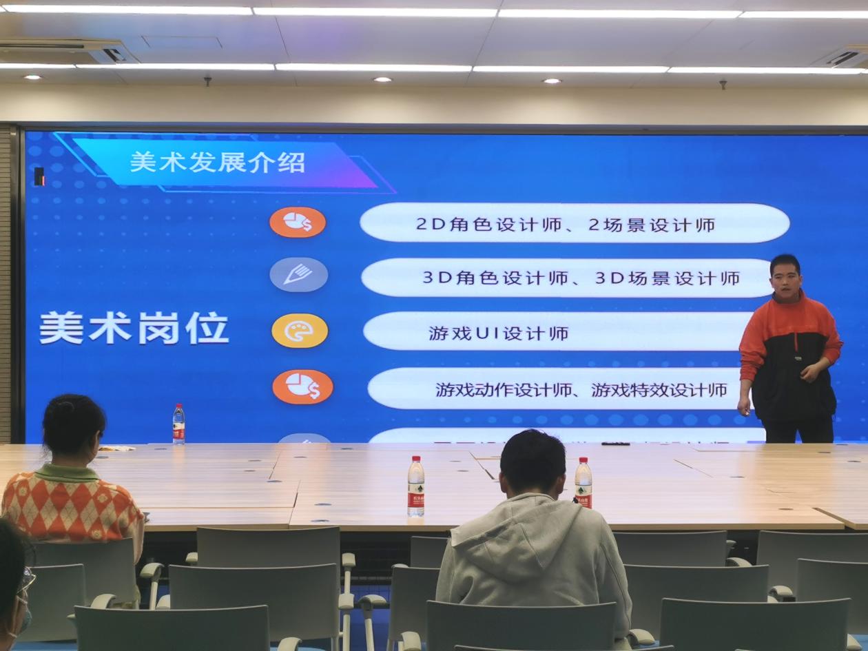 人工智能教育学部讯(记者 刘思源)3月31日上午,人工智能教育学部“赢在职涯”系列讲座之北京畅游天下网络技术有限公司(搜狐游戏)招聘实习宣讲会于南湖综合楼7001会议室顺利举办,此次活动由学部星光学习(创未来)发展中心承办,2017级辅导员周洪茜主持,搜狐游戏产学研经理、人力资源专家雷畅带来主题为“游戏文娱行业的美术人才缺口现状及跨行指南”的分享,大一至大四年级近三十位同学参会。
