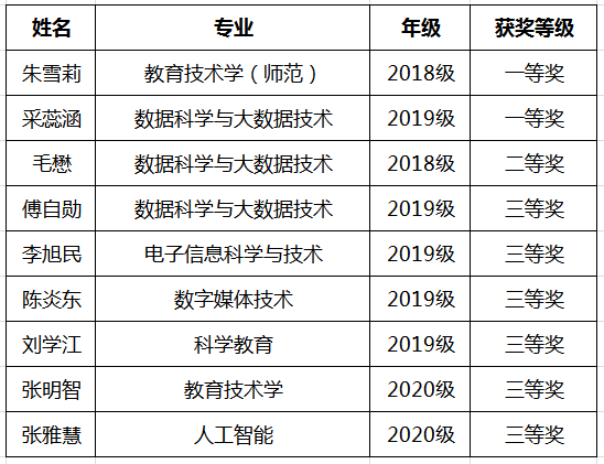 人工智能教育学部讯(记者徐清妍)近日,第十二届全国大学生数学竞赛暨第九届湖北省大学生数据竞赛(非数学类)成绩揭晓,人工智能教育学部学子喜获佳绩:朱雪莉、采蕊涵等2人获得国家级一等奖和省一等奖,毛懋获得国家级二等奖和省二等奖,傅自勋等6人获得省三等奖。