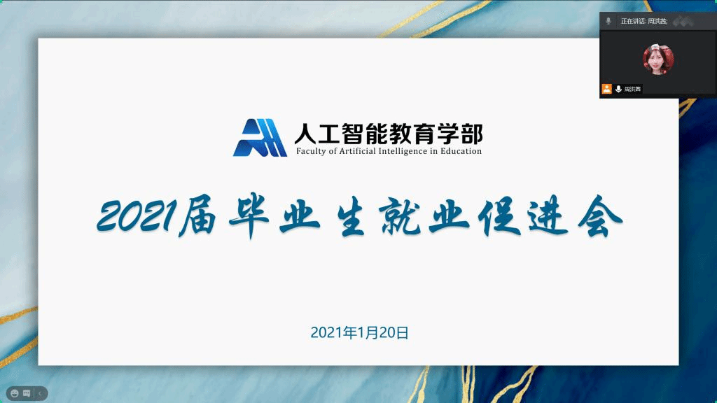 人工智能教育学部讯(通讯员 邓莹)为引导2021届毕业生合理规划假期生活,认清就业形势、提升就业能力,尽早落实签约,1月20日上午11时,人工智能教育学部通过腾讯会议在线召开了2021届本科毕业生就业促进会。学部党委副书记钟文锐以及王贵才、邓伟、王志锋、夏丹、谭政、王世娟等六位毕业班班主任出席,2021届毕业生全体成员参会。