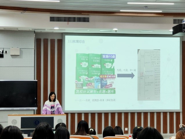 考研本校现代教育技术专业的张丹玲同学主要从思想政治理论、英语、教育综合和C语言程序设计方面分享自己的时间规划,并建议同学们在思政上把错题备注好,在英语上多做真题、多背诵,C语言程序设计重视选择填空上的基础题。