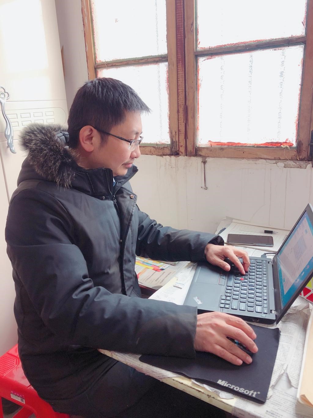 截止到2月15日,云课堂上师生登陆117021人次,学习课件234782人次,学习课程128766人次,平均在线人数2341人。面对高负荷的云课堂平台运维工作,舒江波和他的团队没有任何怨言,而是满怀热情地做好服务工作,耐心解答每一名师生的问题。每当被问及是否有困难时,他总是笑着摇摇头,“能克服,我会尽全力保障云课堂平台平稳运转”。而实际的情形是舒江波在丰乐镇高档村,只能靠手机流量开热点提供网络办公。村里也实行管制,不能出去买东西,鼠标电池没电了就拿出来捏一捏再用,希望能多坚持几天。舒江波克服着种种困难,没有抱怨和迟疑,反而乐观地说道:“幸好我带了电脑回来,不然就耽误事了。”